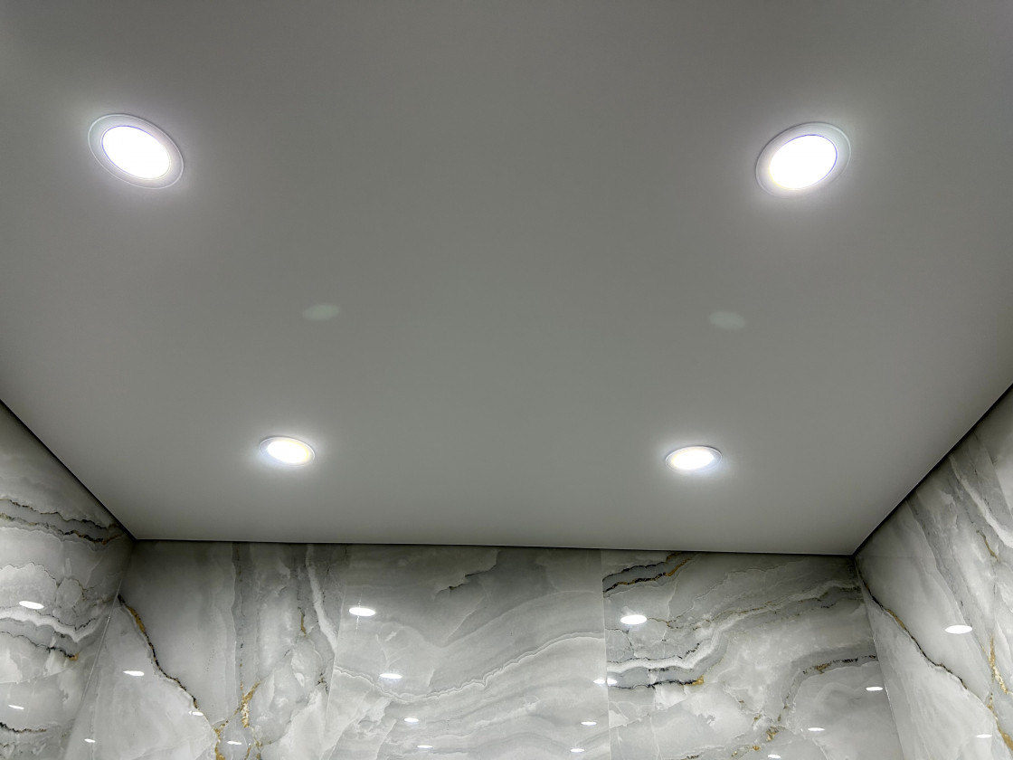 Дуже багато хто вибирає глянцеві натяжні полотна. Глянець відбиває світло і робить приміщення візуально більшим. Дзеркальна поверхня принесе розкоші та блиску ванній кімнаті, і пересічний санвузол перетвориться на царську купіль. Різноманітні відтінки ідеально підбираються під кожен стиль.
